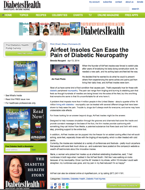 Featured in Diabetes Health Magazine—with two editorials—AIRfeet® ETS is trusted for its quality and effectiveness.